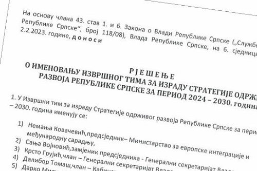 Рјешење о именовању чланова тематских радних група за израду "Стратегије одрживог развоја Републике Српске за период 2024-2030"